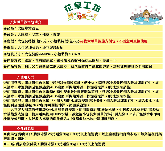 ★優惠方案可與抹草沐浴包一起搭配,超值100分!!